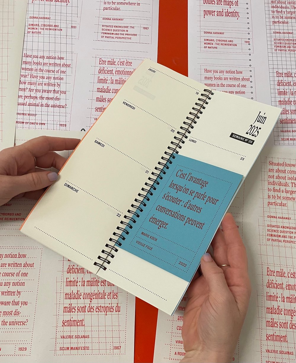 Votre agenda sera composé par nos soins avec des citations, des pages de notes imprimés en riso, et quelques images vintage ou trouvés.